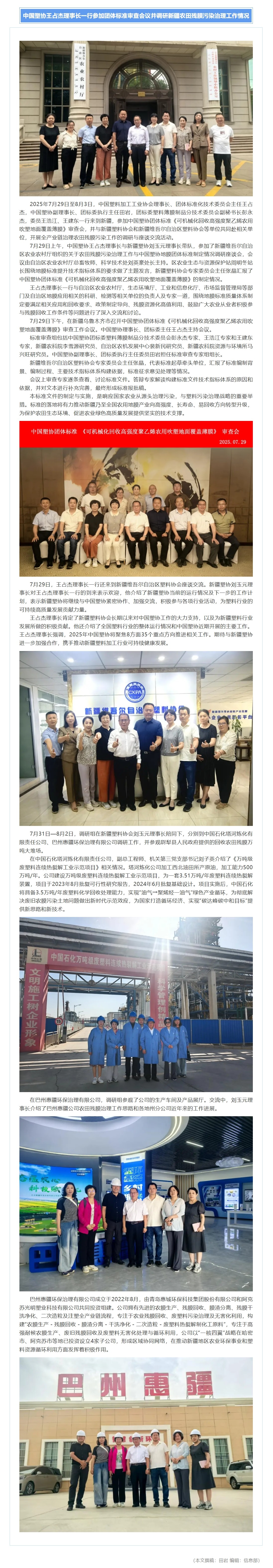 必威手机登录界面王占杰理事长一行参加团体标准审查会议并调研新疆农田残膜污染治理工作情况